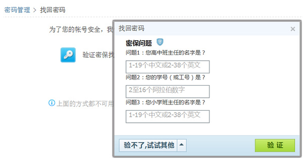 机密问题是进行密码修改、敏感信息变更的重要凭证,请牢记。