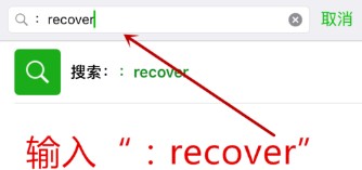 打开“添加朋友”后,我们在搜索栏中搜索输入“:recover”,然后点击搜索,如下图所示。