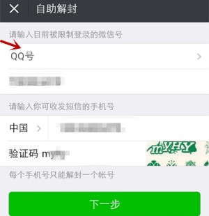 选择要解除锁定的TG号。我的TG号是注册的,所以输入号码,输入可以接收短信的手机号码,您使用的号码,输入验证码,然后单击下一步。
