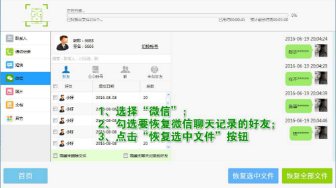 2.在软件的左侧选择本次想要恢复的项目,这里请选择“TG”进入TG聊天记录恢复界面,软件的仿聊天窗口展示内容,让我们可以清楚的观察到TG账号的好友、群等多个标签和具体的TG聊天记录内容,请勾选要恢复的TG聊天记录的好友,点击“恢复选中文件”,这样就可以完成安卓TG删除的聊天记录怎么恢复问题了。